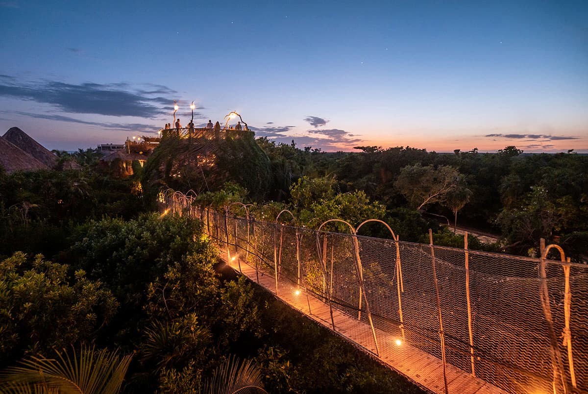 Su propósito comercial y cultural se condensa en un diseño paisajístico que combina vistas al mar y contacto con la selva circundante. El plan constructivo, elevado para no perturbar el ecosistema del suelo, alberga iniciativas gastronómicas, de bienestar y estilo de vida. Conceptualizado como una casa del árbol que invita al juego y al autodescubrimiento, sus diferentes niveles generan una experiencia lúdica alimentada por los materiales endémicos utilizados en su construcción.