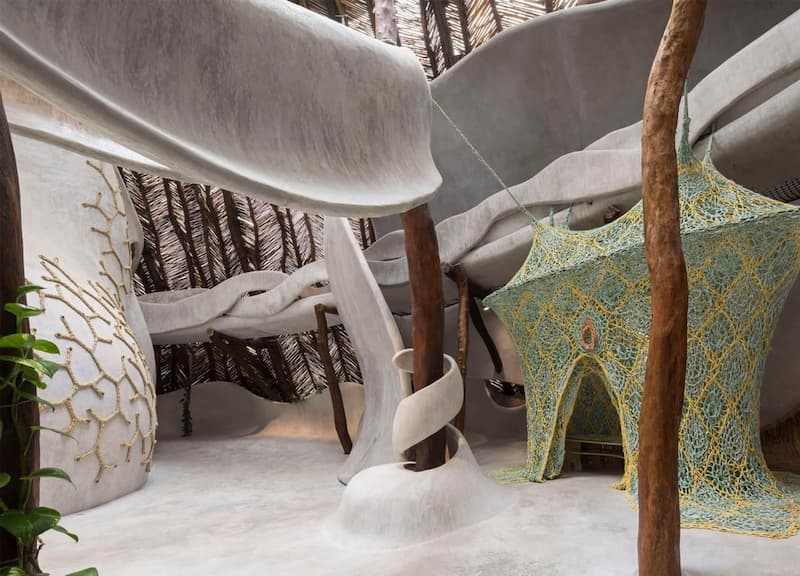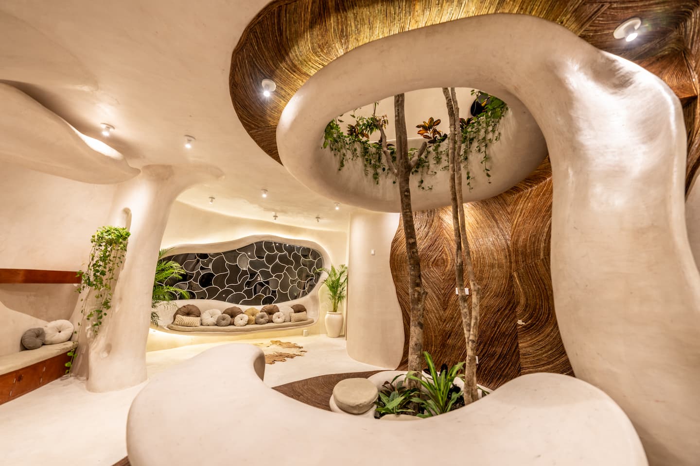 La Residencia AZULIK Uh May se fundamenta en el respeto y la honra a todos los seres que habitan el lugar —árboles, plantas y animales— antes de nuestra llegada. Su diseño surge de una construcción intuitiva que busca integrarse con el entorno, dando forma a una estructura biomórfica, orgánica y única.